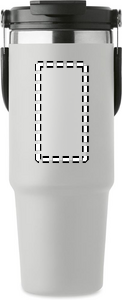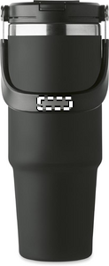 Populär dubbelväggig mugg i återvunnet rostfritt stål (90% återvunnet rostfritt stål och 10% rostfritt stål) med lock med inre sugrör, vikbart munstycke och dricksöppning. Volym 850 ml.