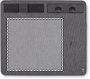 Multifunctional 2 tone 300D polyester RPET mouse mat with 10W wireless charger and phone stand functionality. Use a mousepad to enhance the speed and accuracy of your mouse compared to using it directly on the table or other surfaces. It also protects your desk from wear and tear over time. This mouse mat comes with a built-in 10W wireless charger to charge your smartphone when placed on the mat. Connect the mat to your computer or laptop to provide the charger with power. Output: DC 9V/1.6A (15W) for quick charging. Compatible with latest Androids, iPhone® 8 and newer.