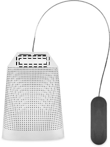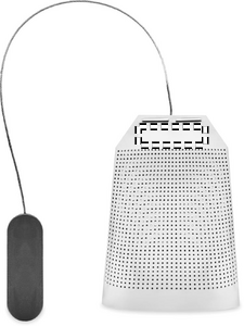 Tesil i rostfritt stål i tepåseform med tallrik. Stor tesil med silikonhandtag.
