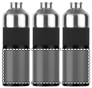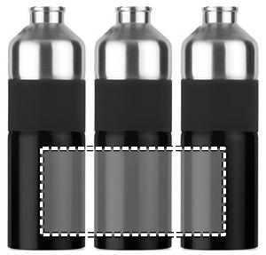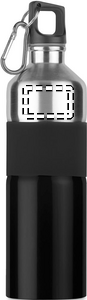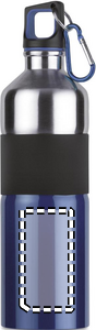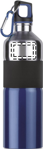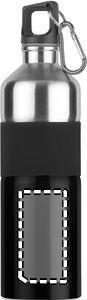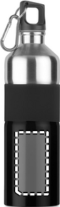 Tofarget drikkeflaske i rustfritt stål med gummigrep og karabinkrok. 750ml. Siden dette er en flaske med én vegg, kan det fortsatt forekomme varmeoverføring.