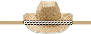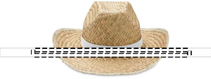 Natural straw hat in cowboy shape with polyester band.