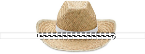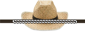 Cool naturlig stråhatt i cowboyform med polyesterband.