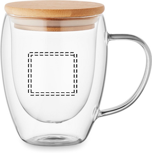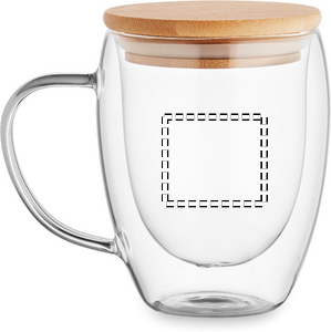 Mugg i borosilikatglas med dubbla väggar, handtag och lock i bambu. Kapacitet: 250 ml.