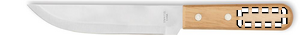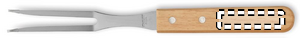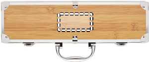 Set med 3 grillverktyg i rostfritt stål. Kniv, gaffel och skärpningsverktyg med trähandtag i aluminiumfodral. Levereras i aluminiumfodral med träimitation.