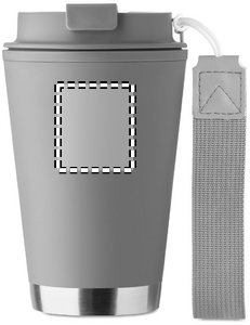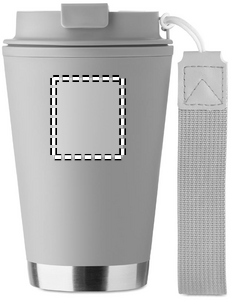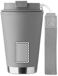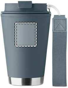 Dubbelväggig mugg med PP inner vägg, återvunnen PP yttervägg, återvunnen rostfri ståldetalj och RPET handledsrem. Kapacitet: 300 ml.