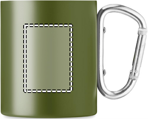 Double wall stainless steel mug, with carabiner handle. Capacity: 300 ml.