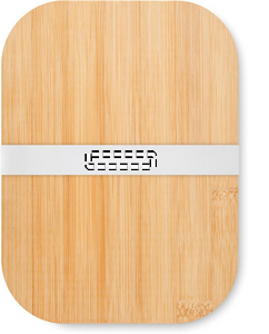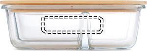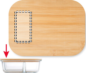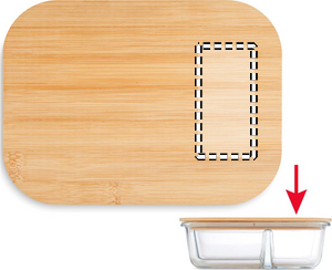Lunch box in borosilicate glass with 3 compartments, bamboo lid and silicone band. Capacity: 800 ml. Bamboo is a natural product, there may be slight variations in colour and size per item, which can affect the final decoration outcome.
