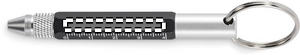 Nyckelring med vridbar penna i återvunnen aluminium med linjal 4 cm och 1,5 tum, stiftpenna och 2 i 1 skruvmejsel med phillips- och platt huvud. Svart bläck.