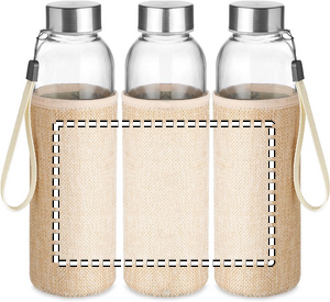 Flaske i glass med koffert i jute / neopren. Kapasitet: 500 ml. Flasken tåler maskintrykk. Ikke egnet for kullsyreholdige drikker. Lekkasjefri.