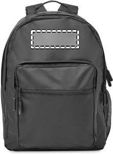 15 inch laptop backpack in 300D RPET polyester. It has 2 large zippered compartments, double zippered front pockets and mesh side pocket. Padded back, bottom and shoulder straps.