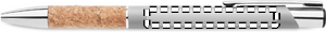 Tryckknappspenna i aluminium med korkgrepp. Blått bläck.
