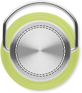 Drinking bottle in RPET which is BPA free and stainless steel cap with lid handle. Leak free. Capacity: 600 ml.