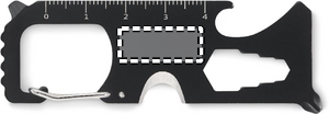 Multiverktyg i rostfritt stål för kort i fickan. 8 funktioner. Innehåller: tandsåg, avbitartång, skiftnyckel, stjärnskruvmejsel, spårskruvmejsel, måttskala, flasköppnare och nyckelring.
