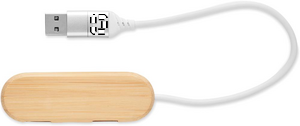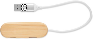 3 port 2.0 Type-C USB hub in bamboo case. Input: 2 in 1 cable connection. Cable length 24 cm.