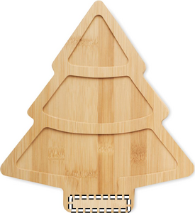 Tree-shaped bamboo serving platter with three ceramic serving dishes. Serve snacks, cheeses and other delicious food on this natural serving board. Present the platter and ceramic dishes as a whole or separate them to serve even more food. Bamboo is a natural product, there may be slight variations in colour and size per item, which can affect the final decoration outcome.