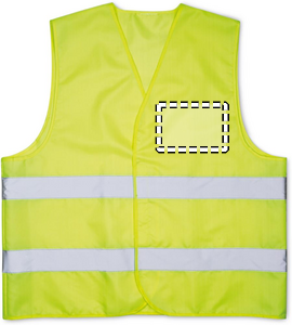 Säkerhetsväst i 100% stickad polyester med klass 2 reflexband med hög synlighet.