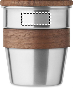 Mugg med enkelvägg i återvunnet rostfritt stål (90% återvunnet rostfritt stål och 10% rostfritt stål) med handtag och lock i valnöt. Volym: 350 ml. Ta bort greppet vid rengöring. Eftersom den har enkelvägg kan värmeöverföring fortfarande förekomma.