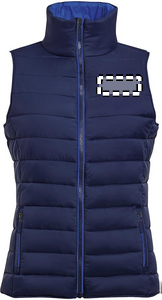 SOL'S WAVE Vest til dame i lett materiale. Dette er den ermeløse modellen til den populære ridejakken, men gir større bevegelsesfrihet. Kan også brukes som et ekstra lag under jakken. Vind- og vannavvisende materialer. To lommer med stilige glidelåser som matcher fôr, høy krage, stilig passform, ton-i-ton nederst. Kvalitet: 100% nylon, fôr: 100% nylon, polstring. Selges kun med trykk