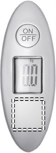 Baggasjevekt i ABS materiale. Max kapasitet på 40 kg. Veier i kilo og pounds. Bruker 1 stk batteri som er inkludert. Kommer i sølvfarget eske
