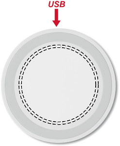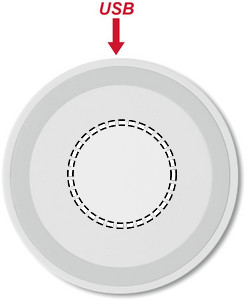 Trådløs lader i slank design for skrivebordet. Kobles til USB-port på datamaskin eller annen lader med USB-kontakt. Lad deretter telefonen ved å bare legge på nettbrettet. Lyser opp under lading.