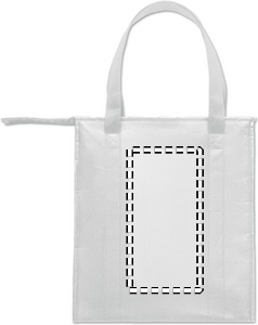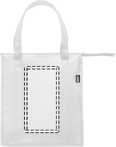 Kylväska/kasse i RPET nonwoven 80gr/m². Isoleringsmaterial: aluminiumfolie. Volym 25 liter. Huvudfack med dragkedja på ovansidan med löstagbar botten i PP.