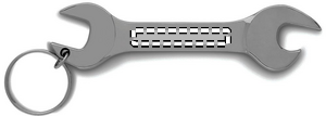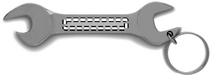Flaskeåpner formet som en skiftenøkkel med nøkkelring.