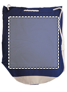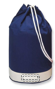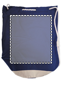 Marineblå duffelbag med hvit kant og snor. 200gr/m2