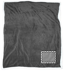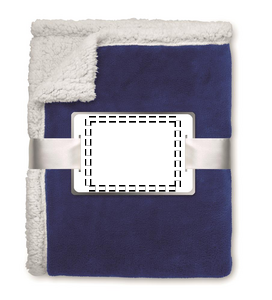 Fleecepledd innpakket i pent bånd og kort til trykk.