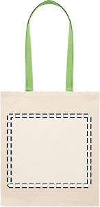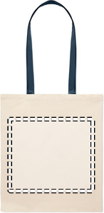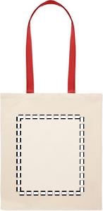 Bomullskasse med långa färgade handtag av bomull. 140 gr/m². Den här tygkassen är perfekt när du skall handla eller andra shoppingaktiviteter. Den finns med olika färgade handtag. Bär väskan över axeln när den är tung och för att hålla händerna fria. Bärviktbegränsning: 2,5 kg. Denna produkt är certifierad enligt OEKO-TEX® STANDARD 100.