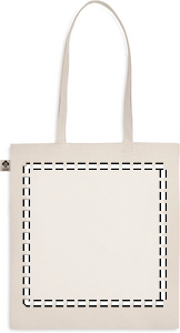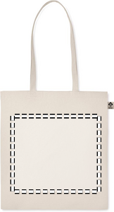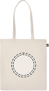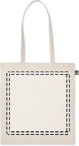 Kasse i ekologisk bomull med långa handtag. 140 gr/m². Denna produkt är certifierad enligt OEKO-TEX® STANDARD 100.
