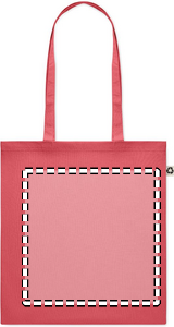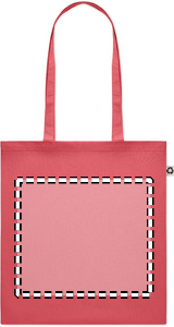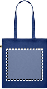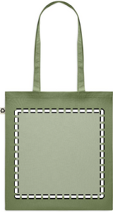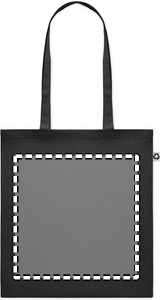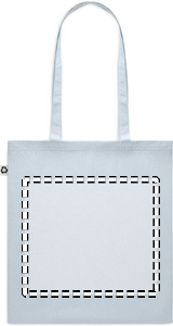 Recycled post-consumer cotton shopping bag (65% recycled cotton, 35% regular cotton) with long handles. 140 gr/m². Take this sustainable shopping bag with you for your daily grocery shopping or use it for events. The long handles make it convenient to carry this tote bag over your shoulder.