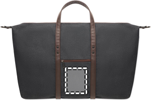 Weekend bag in high quality 450 gr/m² washed canvas with recyled PU details. Lining is in RPET 210D. Strong adjustable and detachable straps included. Perfect hand luggage size.